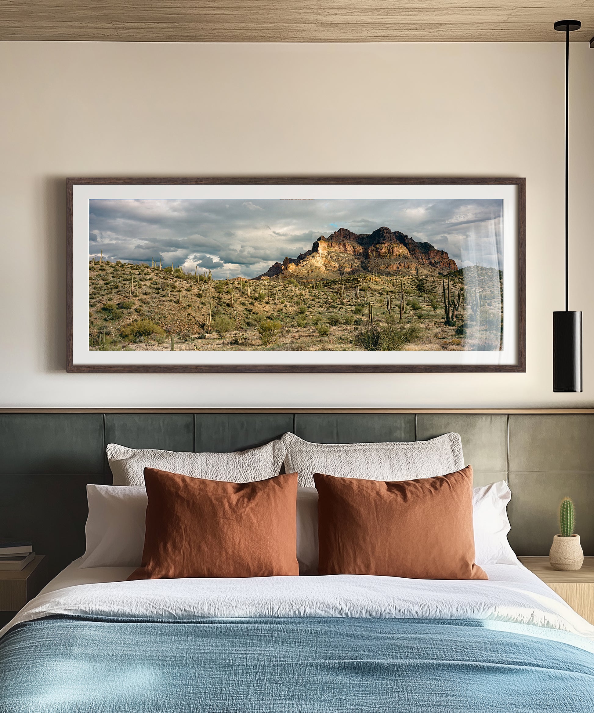A truly epic piece by Cam Mackey, "Saguaro Mountain" transports you to the heart of the Arizona desert. In this stunning shot, towering saguaro cacti stand proudly against a backdrop of rugged mountains, capturing the raw beauty of the Southwest. The vibrant desert colors and expansive landscape make this piece a perfect addition for anyone looking to bring a touch of nature’s grandeur into their home.