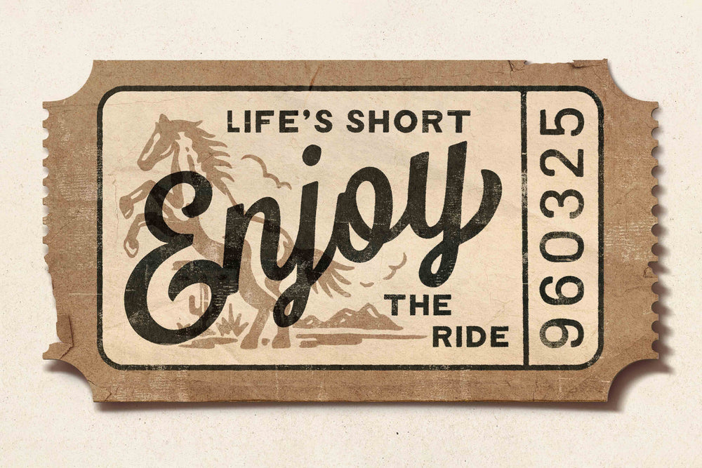 One of the mottos we live by: "Life's short, enjoy the ride." This print serves as a daily reminder to take things in stride and have fun along the way. With a design inspired by a classic fair ride ticket and custom-crafted typography, this piece will make a unique and vibrant addition to your western-themed walls.