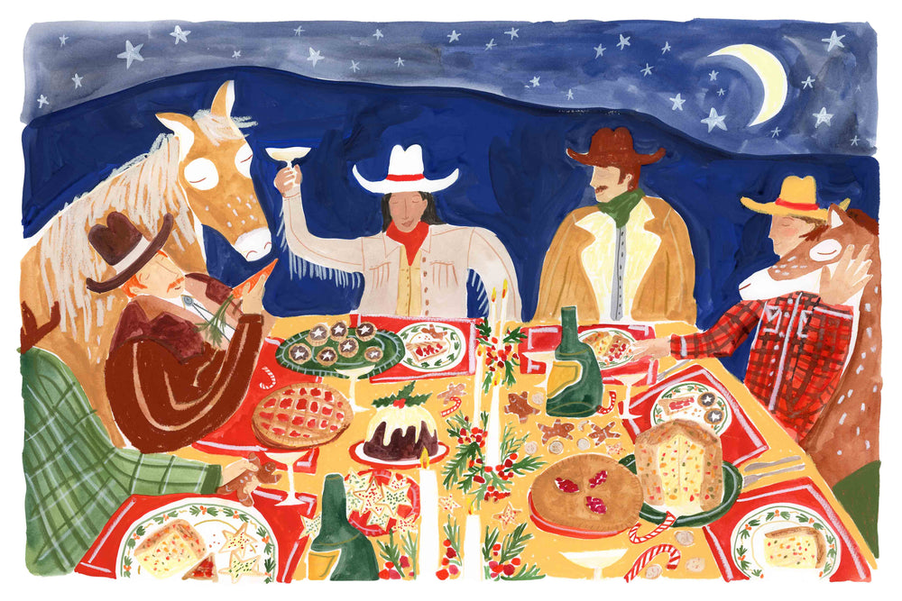 It’s the end of the year, and everyone from the ranch (animals included) has gathered to celebrate in this festive piece by Melissa Lakey. Titled "A Feast Under the Stars," it brings an abundance of western warmth and cheer to your walls this holiday season, where you’ll hopefully be gathering with family and friends too. Celebrate the most joyful time of the year with a print that spreads cheer all season long.
