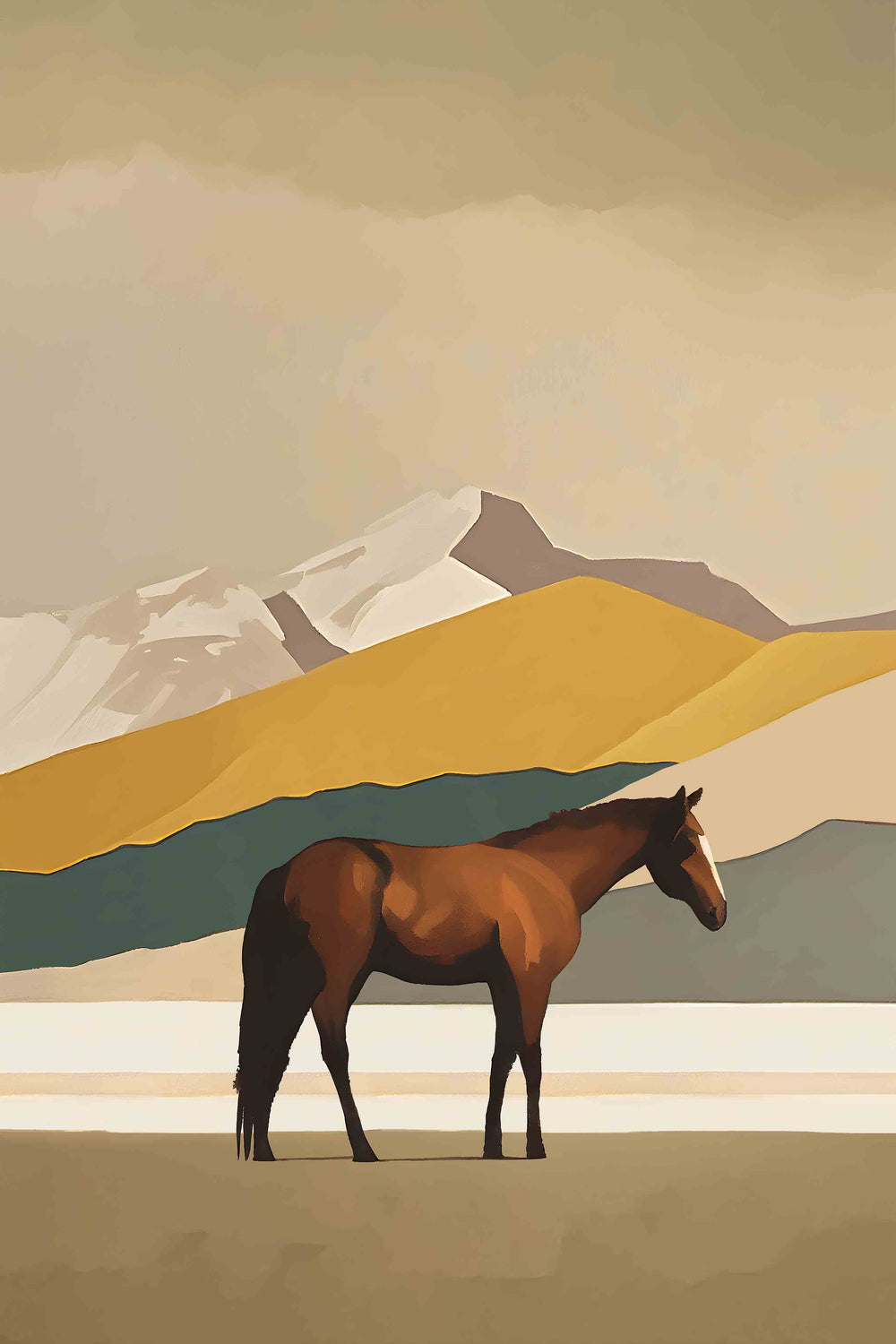 This minimalist artwork entitled "The Stallion," is the third piece in our Home On the Range Series. This series of prints, done in a simple oil painting style, brings a modern, elegant touch to your western or southwestern walls.