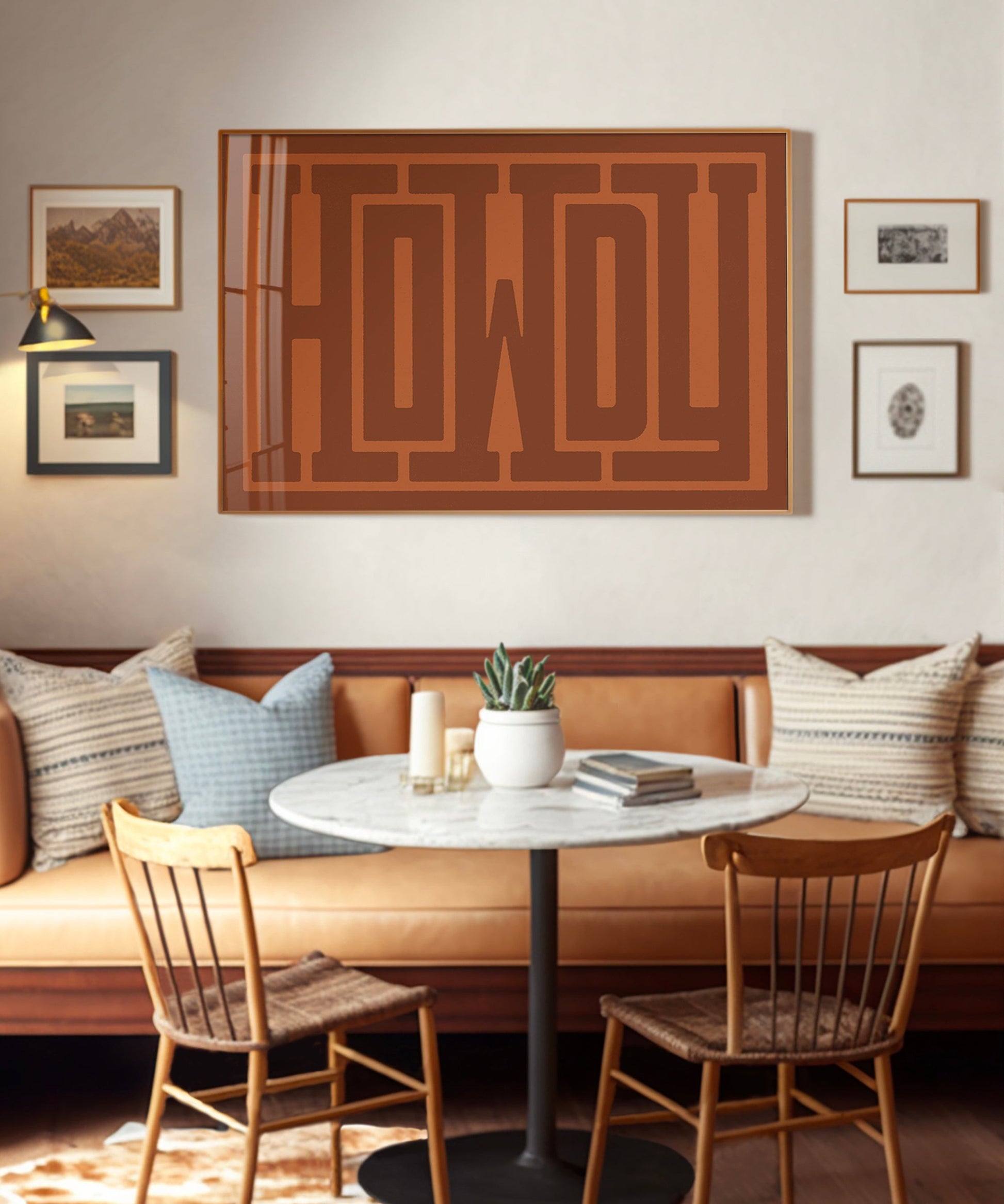 We wouldn't be a Western print shop if we didn't have a Howdy print, now would we? This modern typographic poster will be sure to add a bold touch to your Southwestern walls. Goes great in any entryway, kitchen, or living room, and makes a nice addition to an eclectic or bohemian gallery wall.