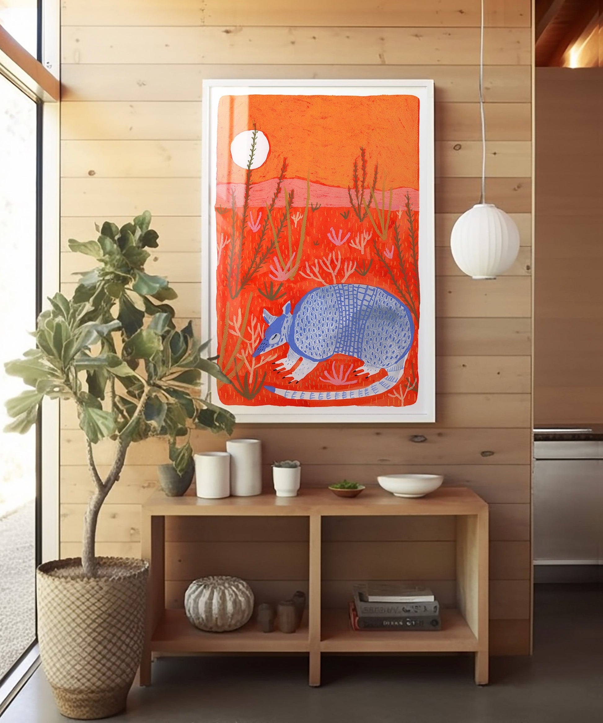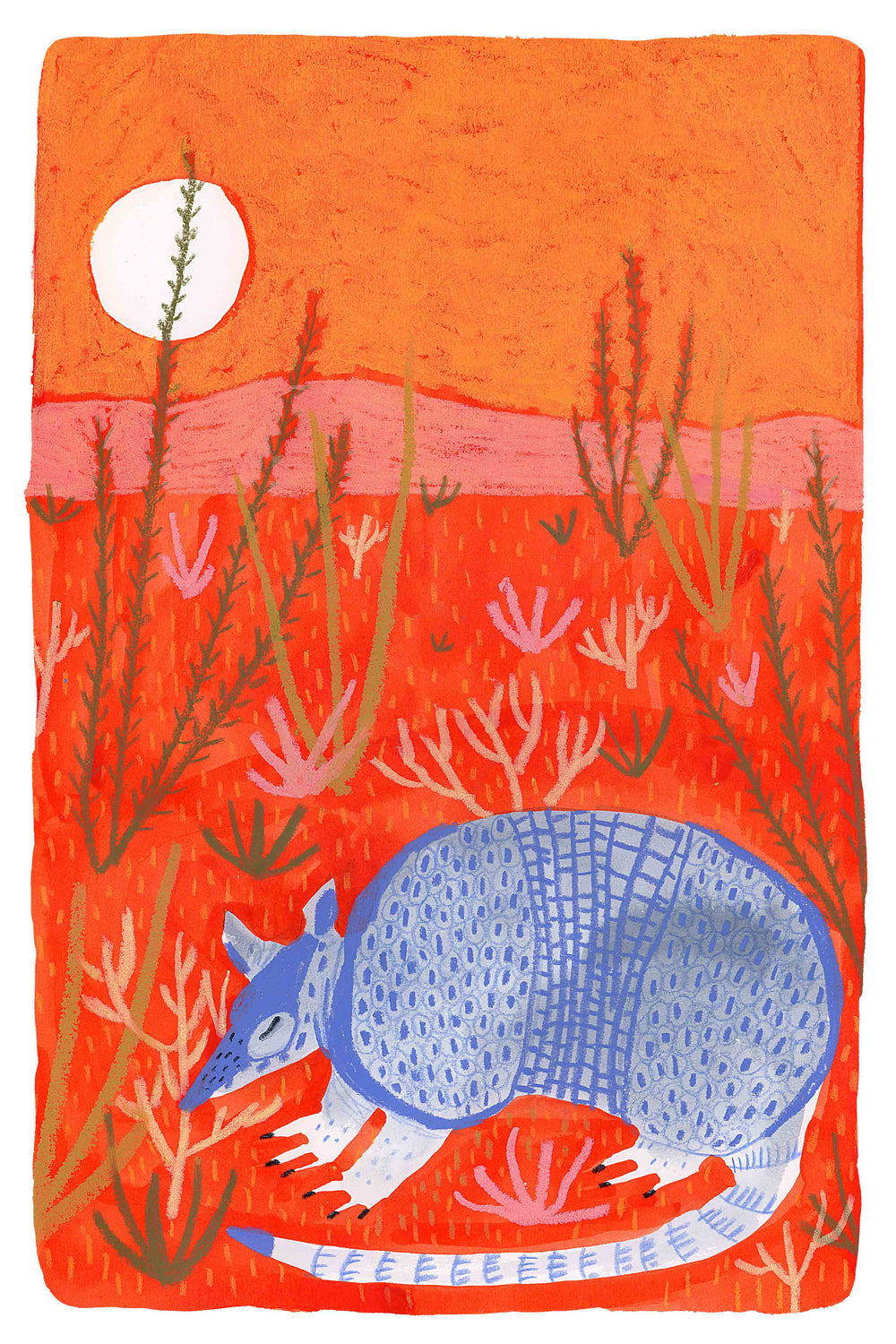 This print, entitled "Little Armadillo" is print #8 in our series by Melissa Lakey. This fun and vibrant collection is sure to pop off your walls, making the perfect colorful addition to any living room, kitchen, or nursery! This little armadillo pairs especially well with her other print - Resting Roadrunner.Â