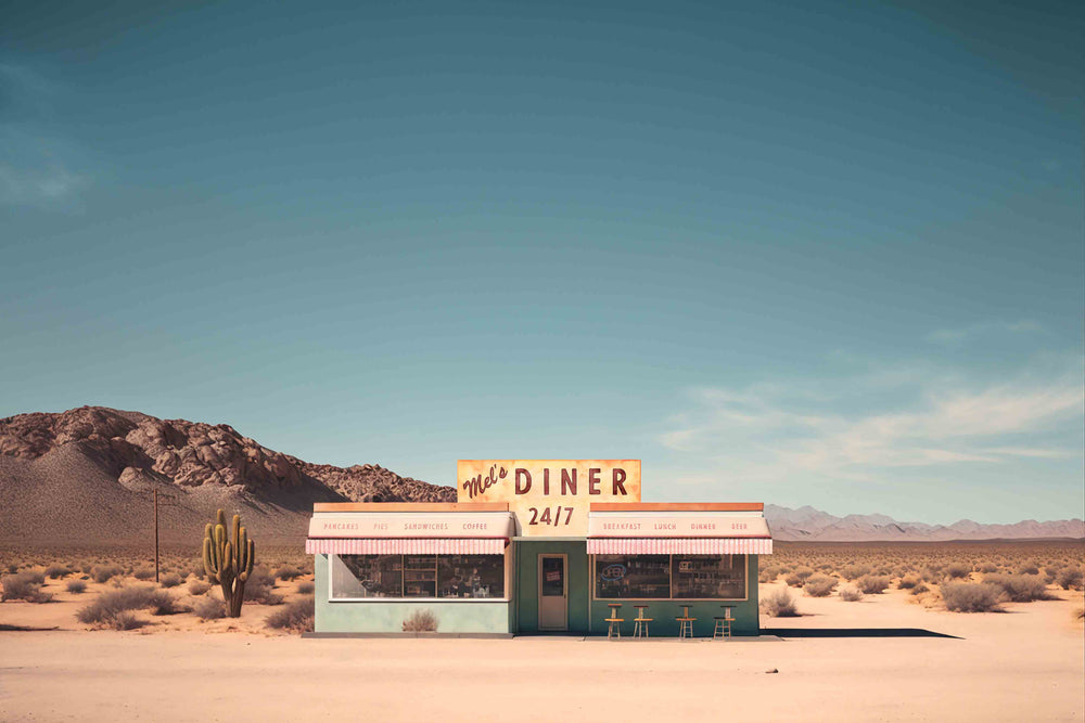 This print, entitled Mel's Diner, is print #1 in our Roadside Remains series, a series inspired by the long forgotten places you'll come across on a road trip West. This piece, which comes printed on a slightly glossy premium photo paper, is perfect for any western, southwestern or boho space. Hang it in your office or entryway for a minimalistic modern touch, or give it as a gift to the road tripper in your family!
