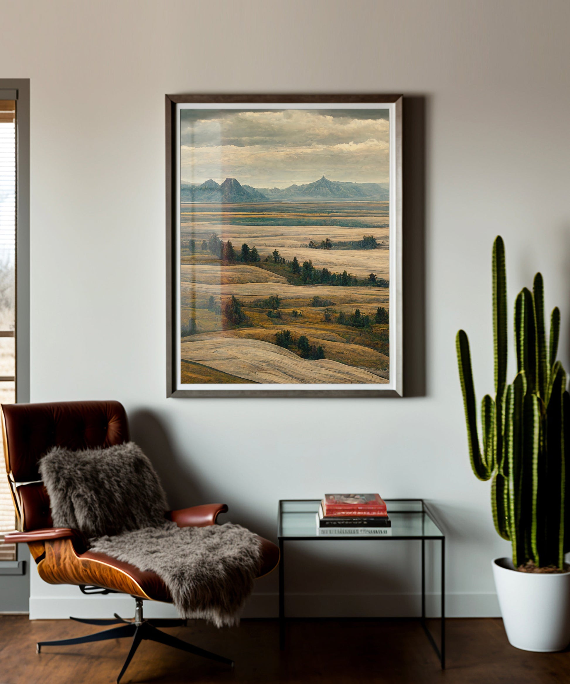 This modern landscape print of the Montana mountains is the perfect wall art for any ranch, lodge or cabin. Hang it for a touch of western or southwestern decor in your space, this abstract oil painting makes the perfect decor gift for the rancher or traveler in your family. Also goes great in any boho or eclectic space!