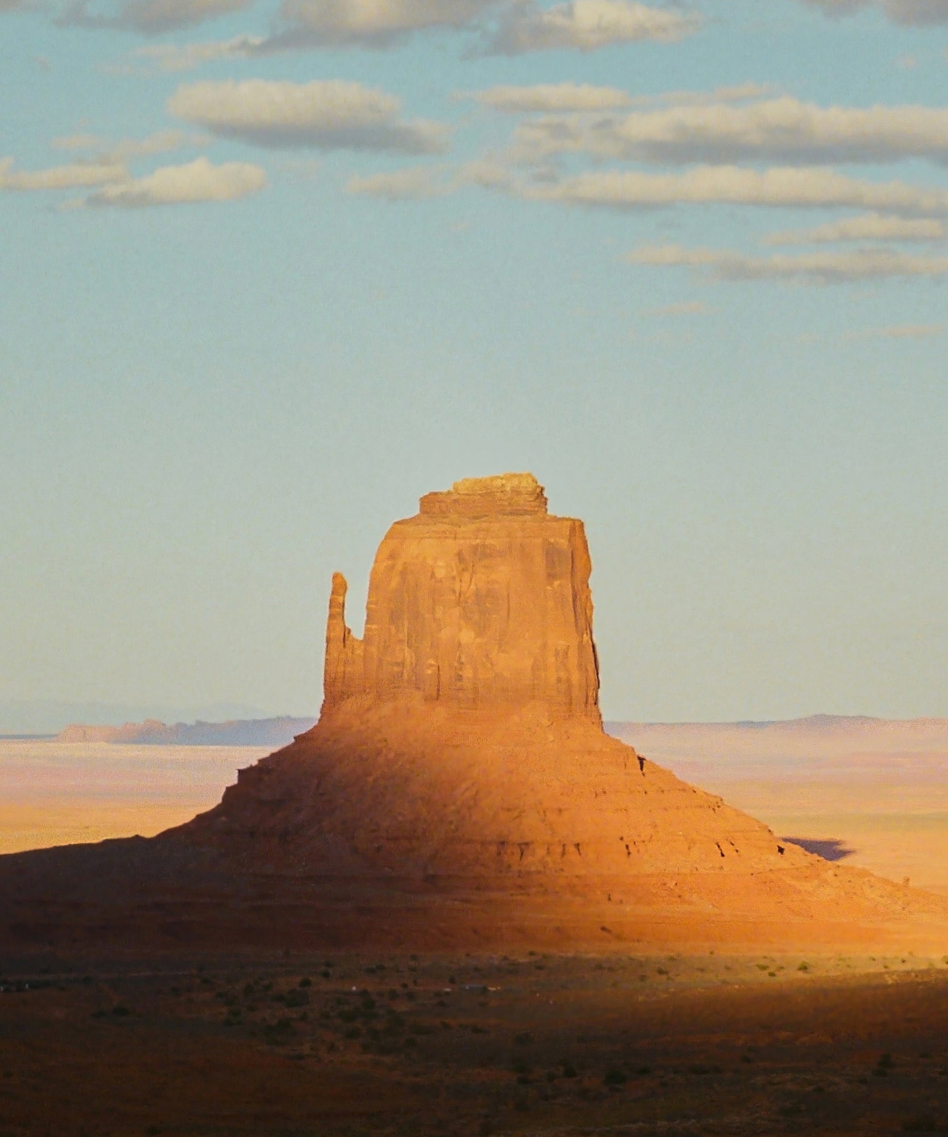 This beautiful landscape, captured by partner photographer Taylor Hoover, features one of the giants of Monument Valley below a surreal sky. Captured on film, which gives Taylor's work it's distinct cyan sky, this shot will bring a beautiful pop of color to your space.