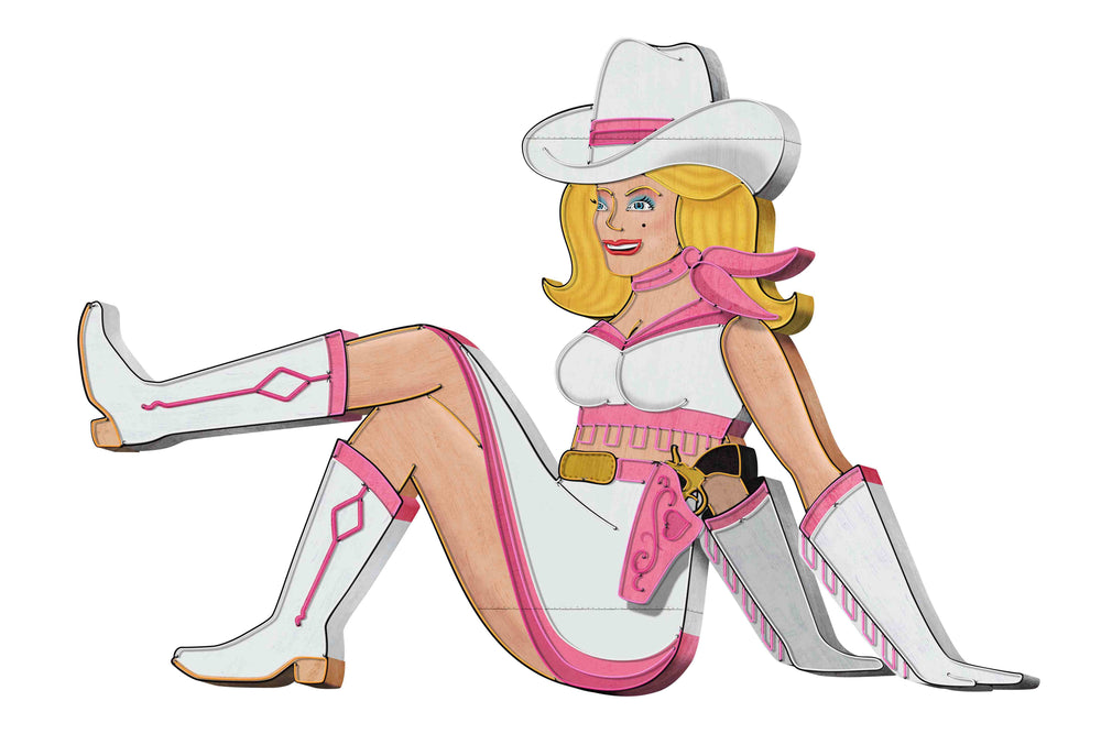 This vivid pop art print of a neon cowgirl is inspired by the classic cowboy neons that used to hang on the old Vegas Strip. Look closely to see all kinds of fun textures and details which give this print tons of character. Printed on a semi-gloss photo paper, this piece is sure to make a fun addition to your western space! This design also comes in a glowing night time version if you prefer a black background instead!