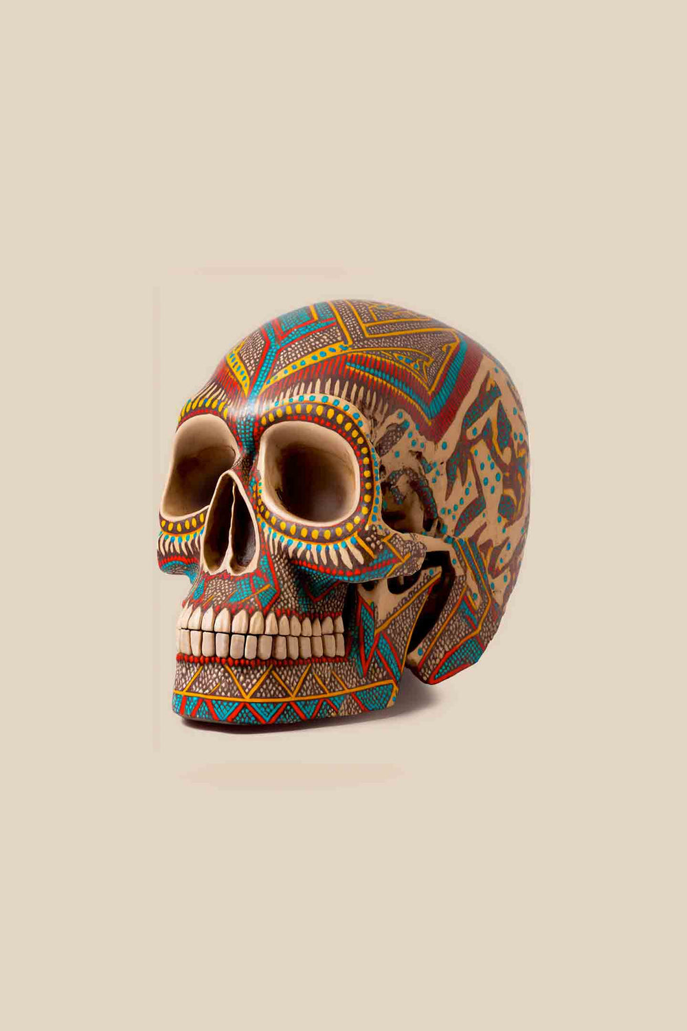 This fun & colorful print is #3 in a series of 5 Southwestern Skulls. Inspired by Native American colors and patterns, Dia De Los Muertos skeletons, and Oaxacan wood carvings, this modern and colorful wall art is sure to make a statement in your Western or Southwestern home. Hang it solo in your cabin, ranch, or lodge for a fun pop of color in your bedroom, bathroom or living room, or add it to a boho or eclectic gallery wall!