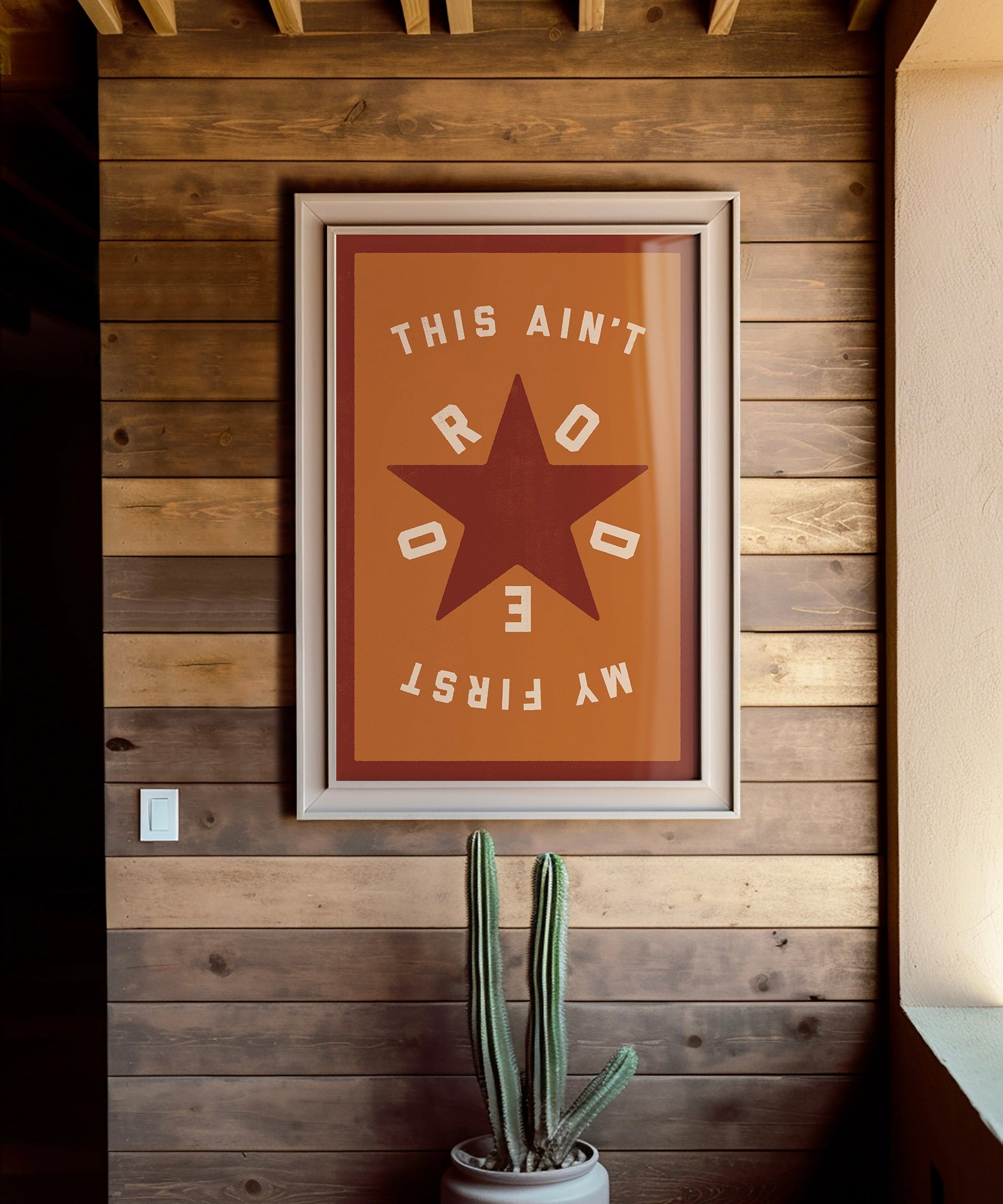 This minimalist typography print is our second take on the popular phrase "This Ain't My First Rodeo." This fun piece draws inspiration from the lone star of Texas, making it the perfect poster for any Texan home or rodeo lover!